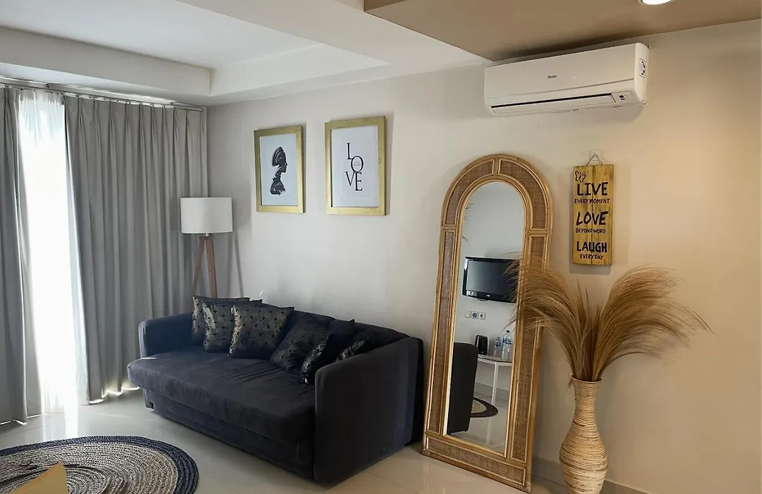 The 30 m² apartment lies a few moments from the Bali Omisego Premium Transport. The apartment is also situated in close proximity to the Odyssey Submarine Office Bali. Apartment Keluarga Di Kuta Bali is merely 1.5 km from the watery amusement park "Waterbom Bali".